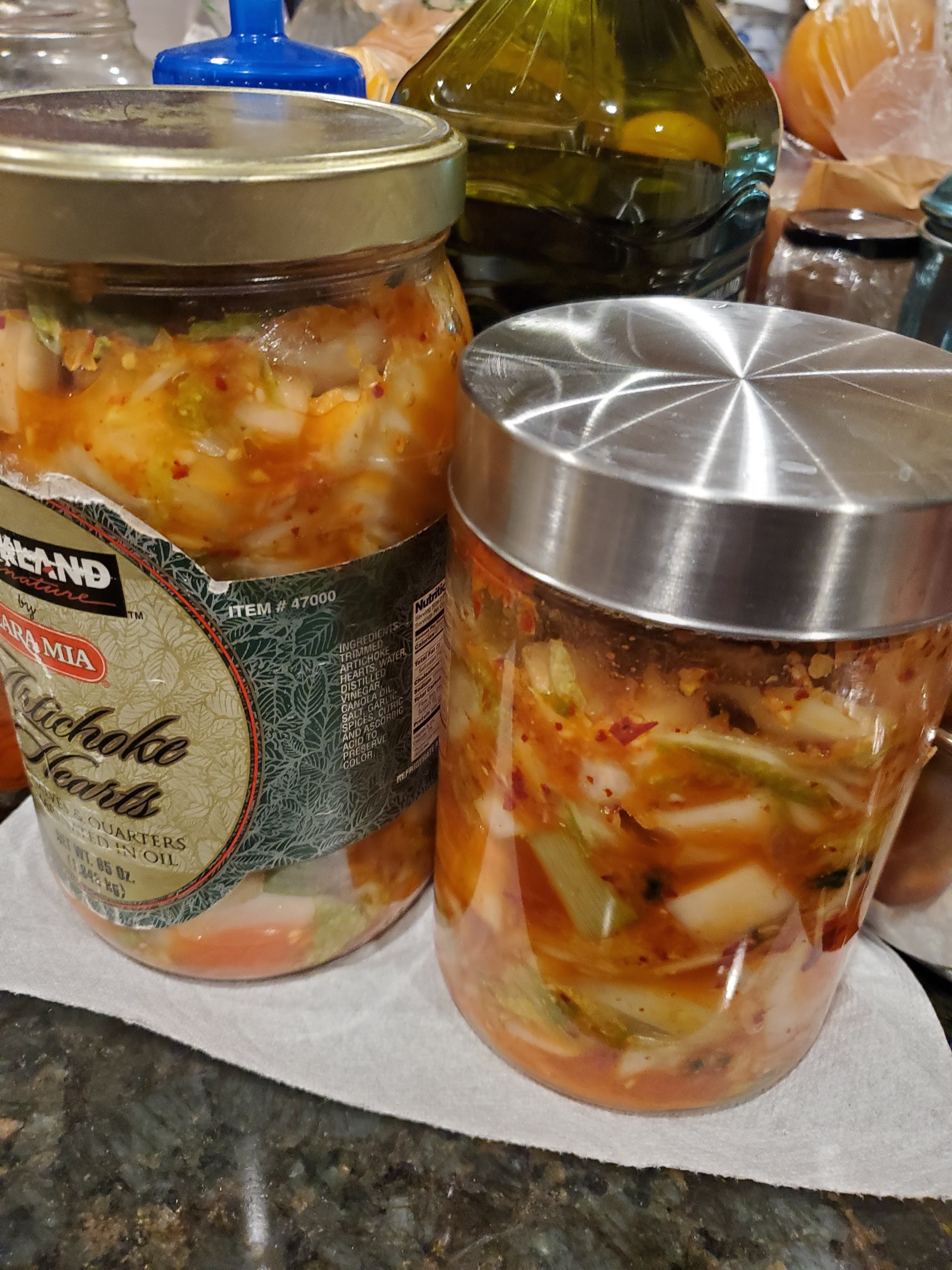 Kimchi is much the same. Its preparation is very forgiving and flexible. It is a spicy vegetable fermentation from Korea. Versatile, it can be eaten raw as a side dish (banchan), or cooked into foods like fried rice and stew (jjigae). It can be made with whatever vegetables are on hand at a given season. It just follows a generic template.