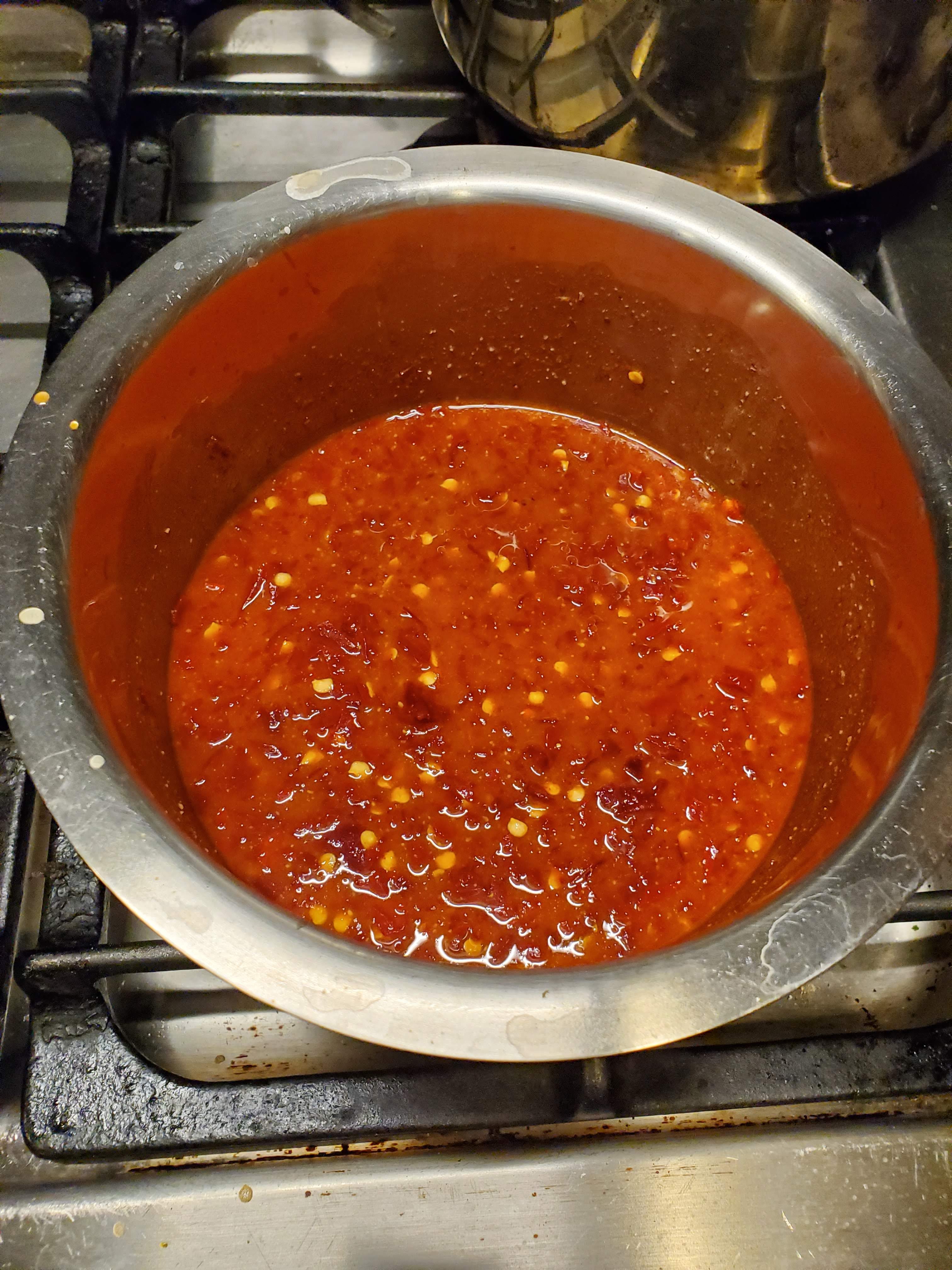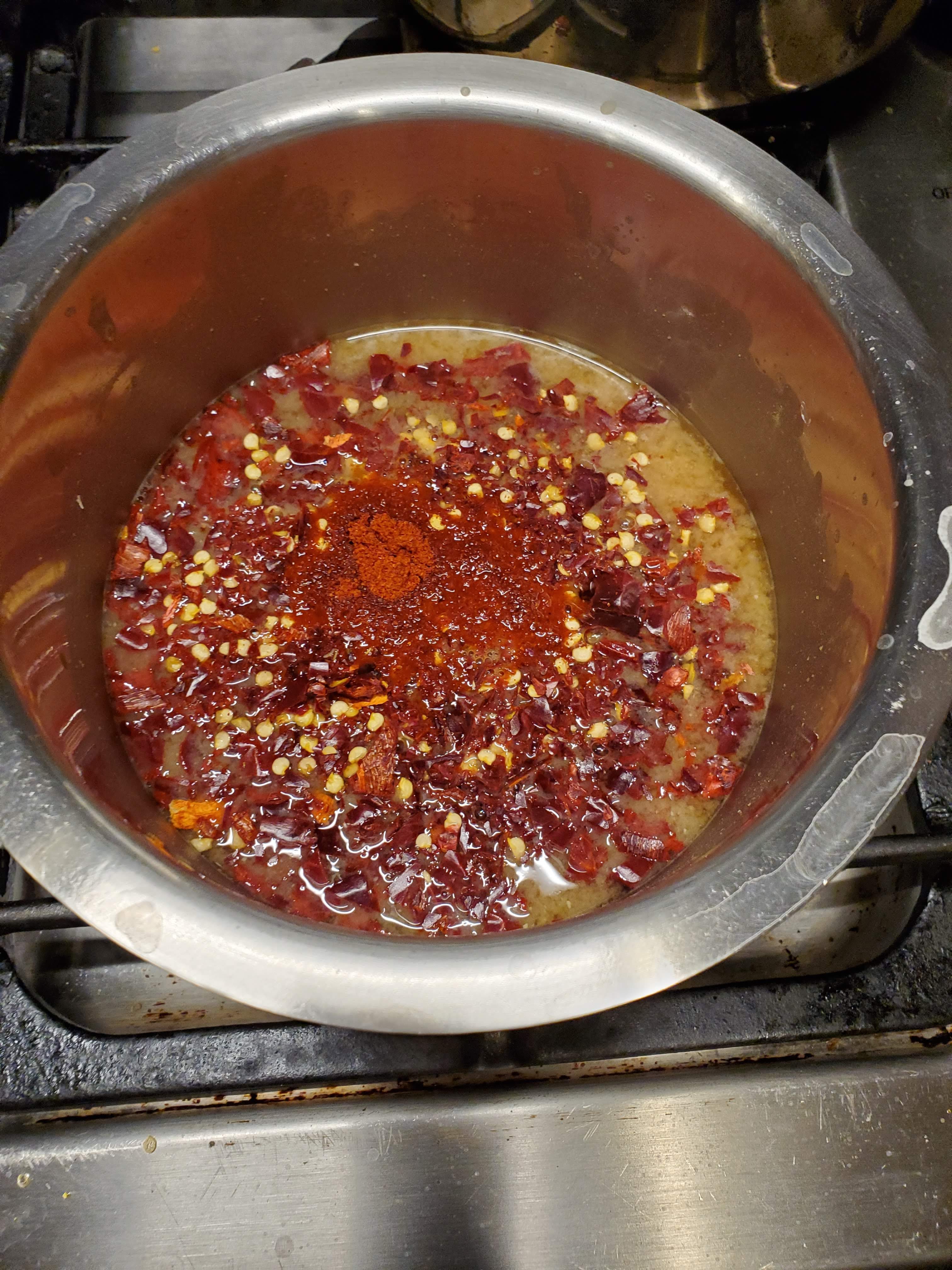 Take some garlic, ginger, and maybe some onions or shallots, and blend them up together. I like to throw in a chili pepper (habanero) to up the spiciness. Dump this into the fish sauce with Korean chili powder (gochujaru). The first time I made kimchi, I did not have these peppers. Instead, I used Mexican guajillo chilis chopped up into fine pieces along with 2 Thai chilis, 2 habaneros, and a tablespoon of cayenne pepper powder. Gochujaru isn't really spicy, so the guajillo chilis made a decent substitute. The other chilis were important for me because I like spicy food. Mix all this up to make the pickling liquid.